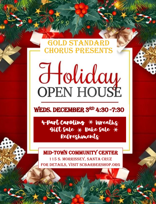Drop in for holiday fun, gifts and caroling in 4-part harmony - it's free, fun and a great way to kick off the holiday season!